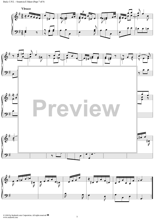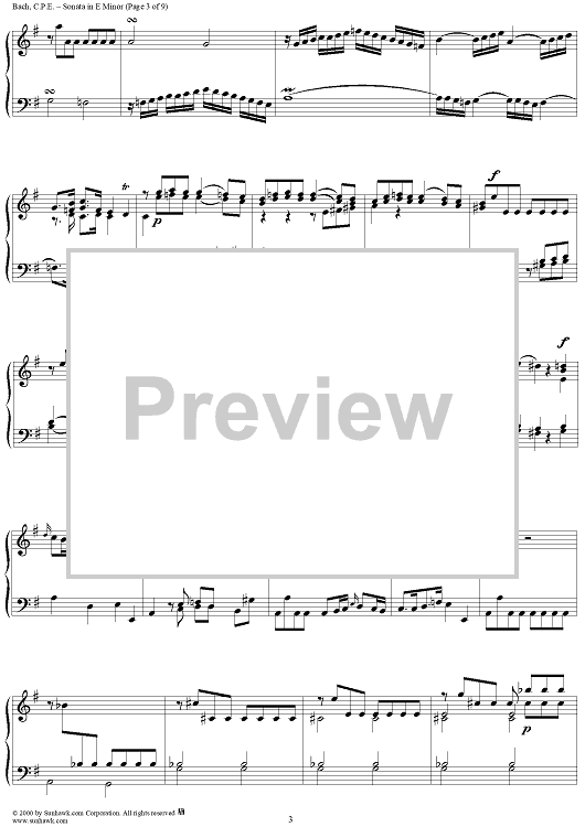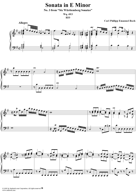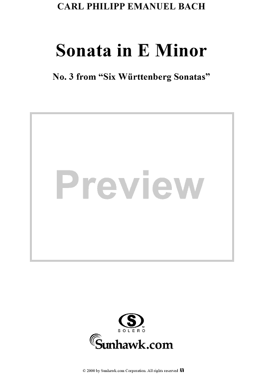 "Wurttemberg Sonatas, Sonata 3" Sheet Music by Carl Philipp Emanuel Bach