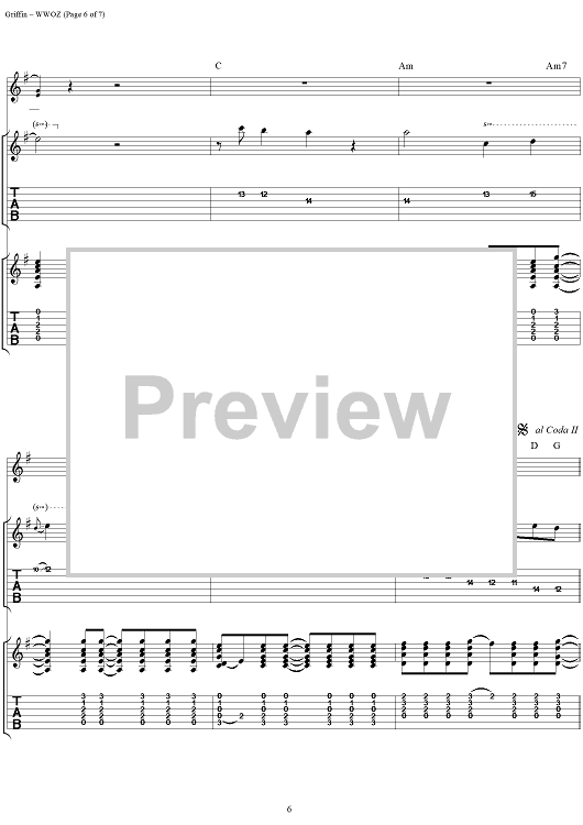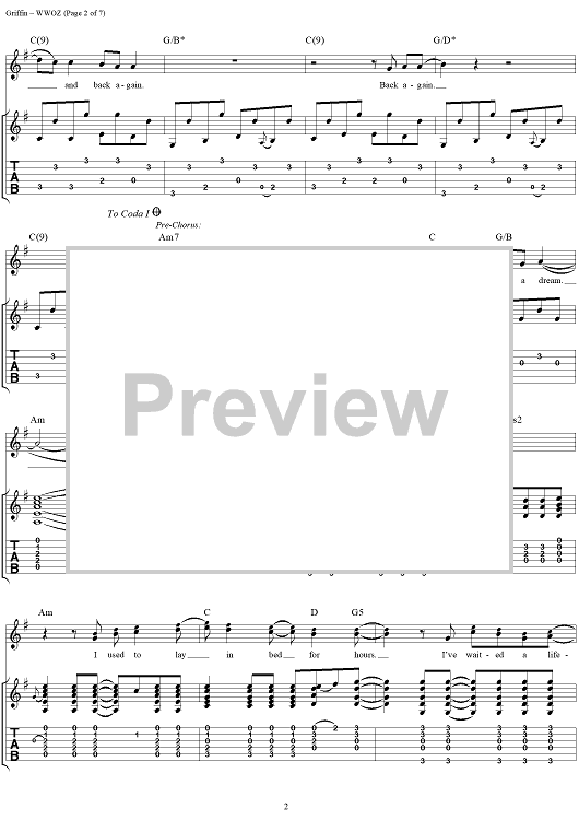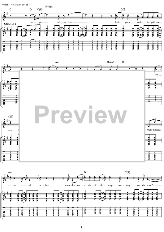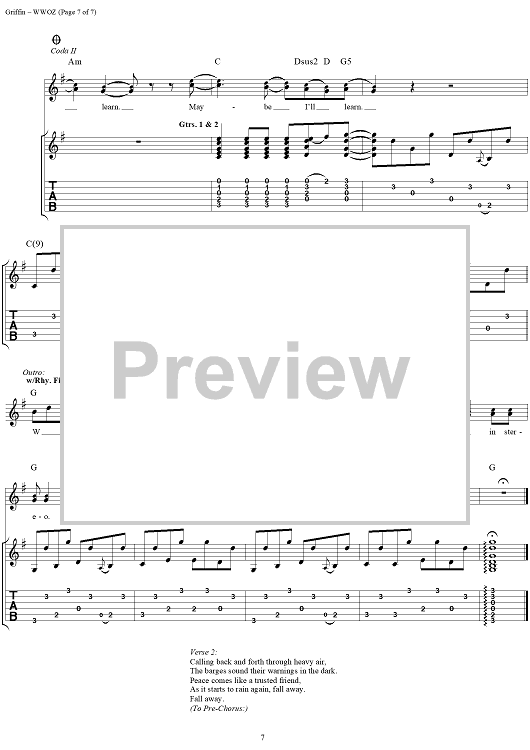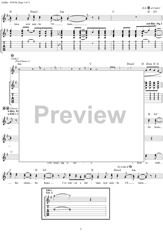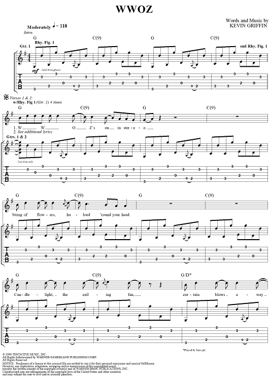 Digital Sheet Music for WWOZ by Better Than Ezra, Kevin Griffin scored for Guitar Tab/Vocal; id:116812