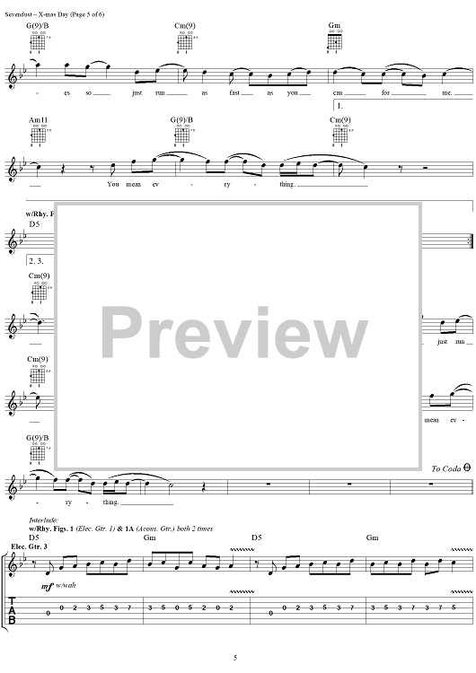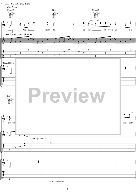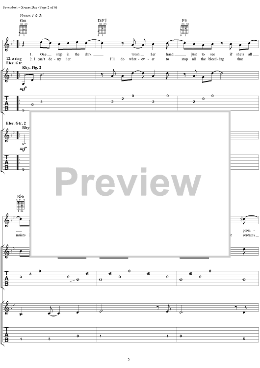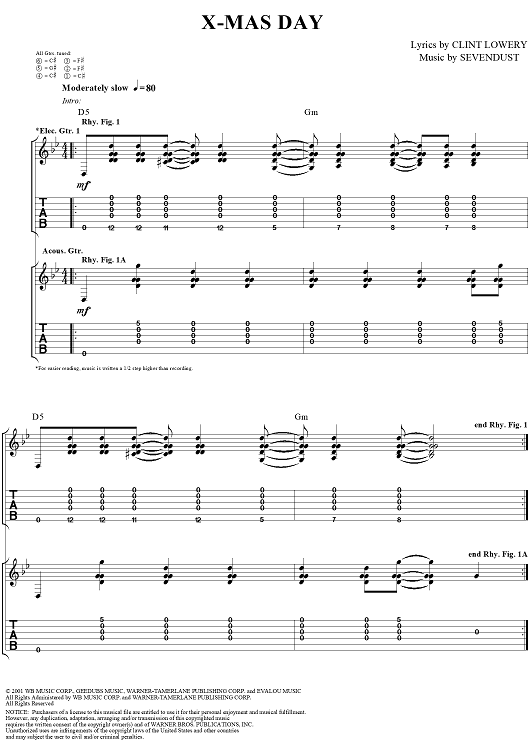 Digital Sheet Music for X-mas Day by Sevendust, Clint Lowery scored for Guitar Tab/Vocal; id:289666