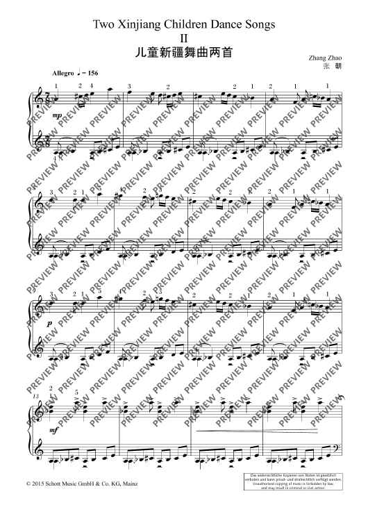 Digital Sheet Music for Xinjiang Children Dance Song by Zhao Zhang scored for Piano; id:490034