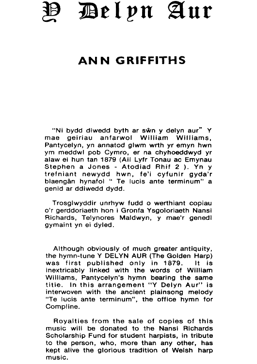 Digital Sheet Music for Y Delyn Aur - The Golden Harp by Ann Griffiths, Traditional scored for Harp Solo; id:328809