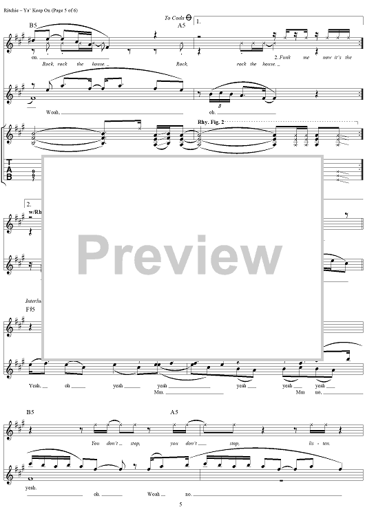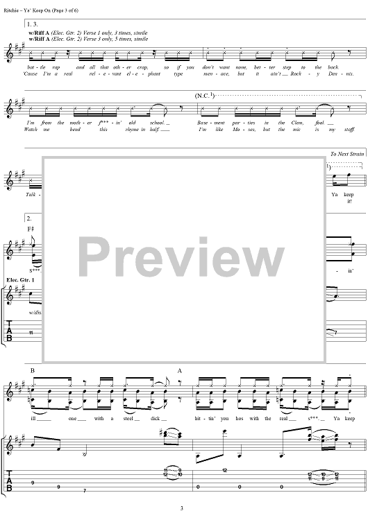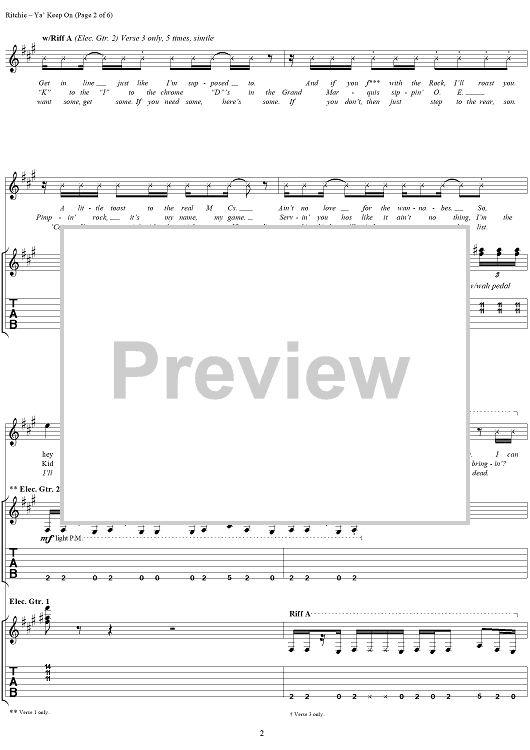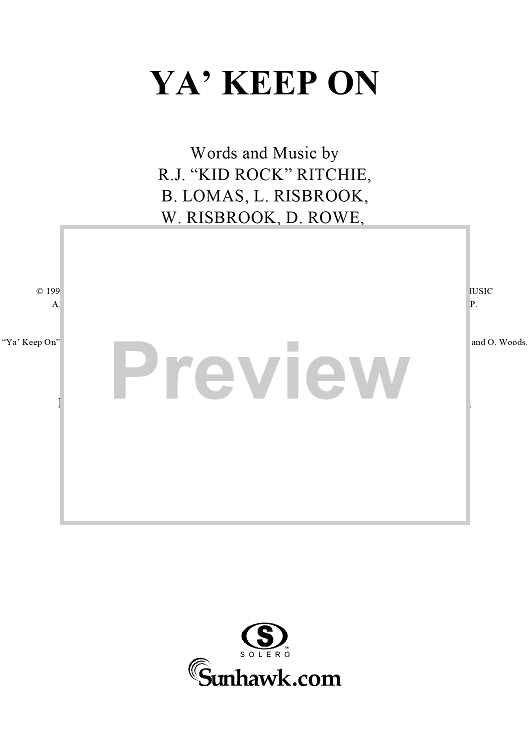 Digital Sheet Music for Ya' Keep On by Kid Rock, R. Thompson, R.J. ''Kid Rock'' Ritchie, B. Lomas, L. Risbrook, W. Risbrook, D. Rowe, C. Ward, O. Woods scored for Guitar Tab/Vocal; id:285855