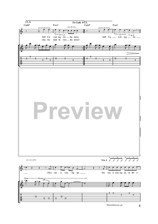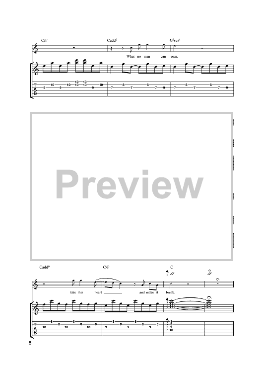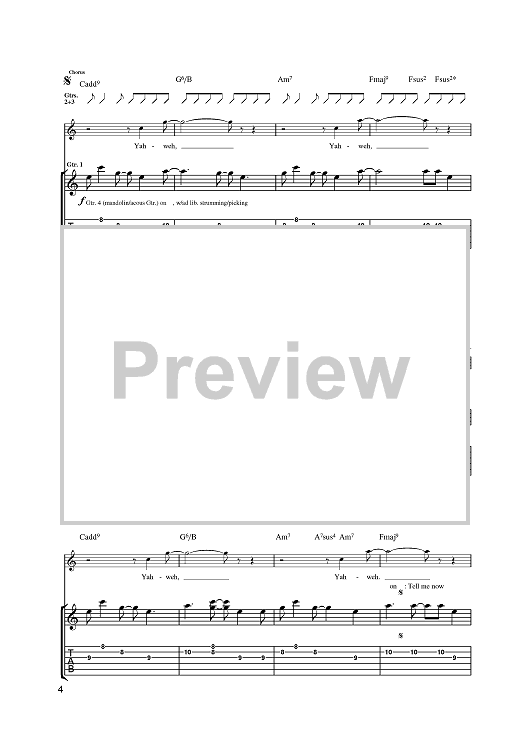Digital Sheet Music for Yahweh by U2, Bono, The Edge scored for Guitar Tab; id:381682