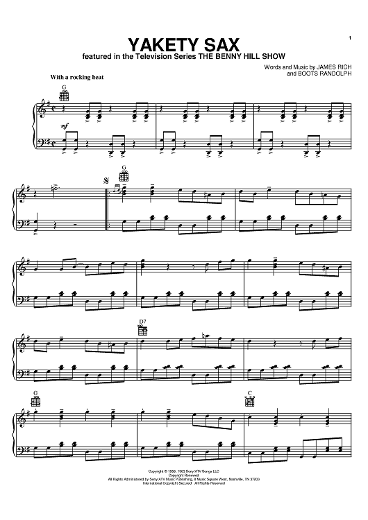 Digital Sheet Music for Yakety Sax by Boots Randolph, James Rich scored for Piano/Vocal/Chords; id:370865