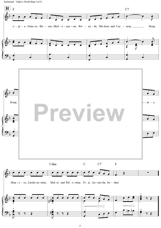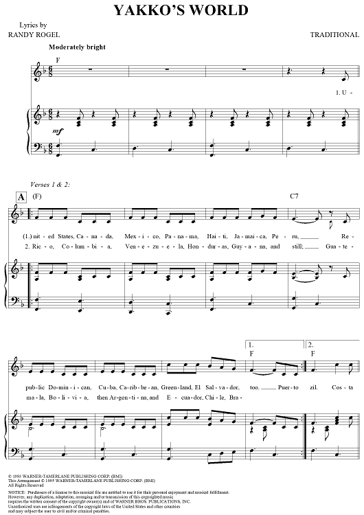 Digital Sheet Music for Yakko's World by Randy Rogel, Traditional scored for Piano/Vocal/Chords; id:262164