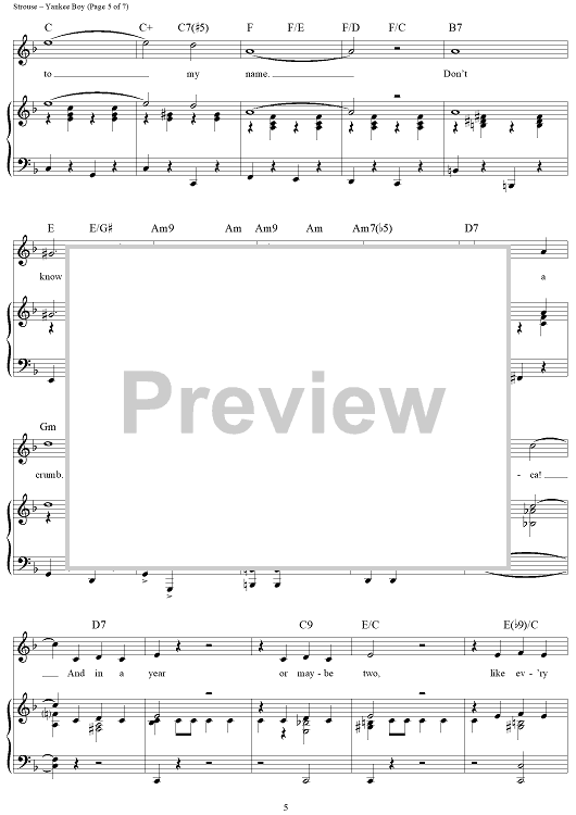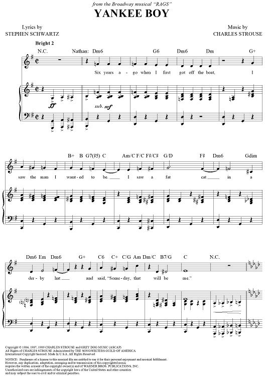 Digital Sheet Music for Yankee Boy by Charles Strouse, Stephen Schwartz scored for Piano/Vocal/Chords; id:259411
