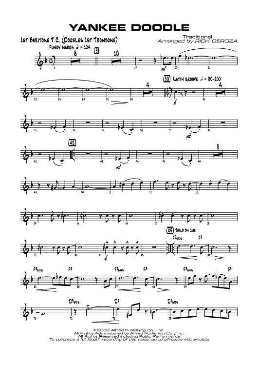 Digital Sheet Music for Yankee Doodle - Baritone 1 TC by Traditional, Rich DeRosa scored for Jazz Ensemble; id:359751