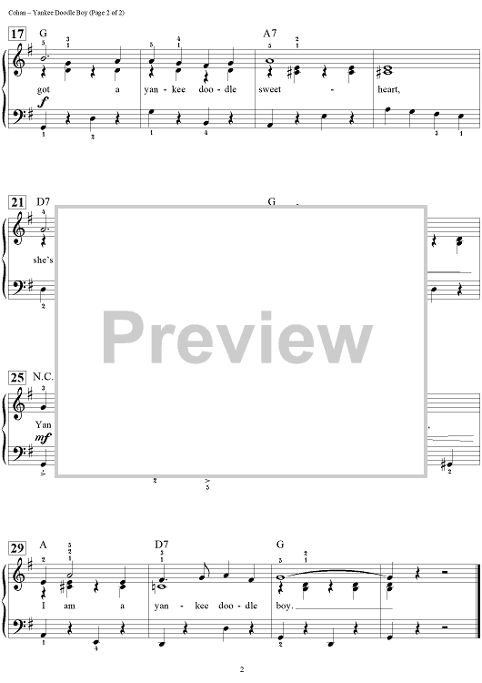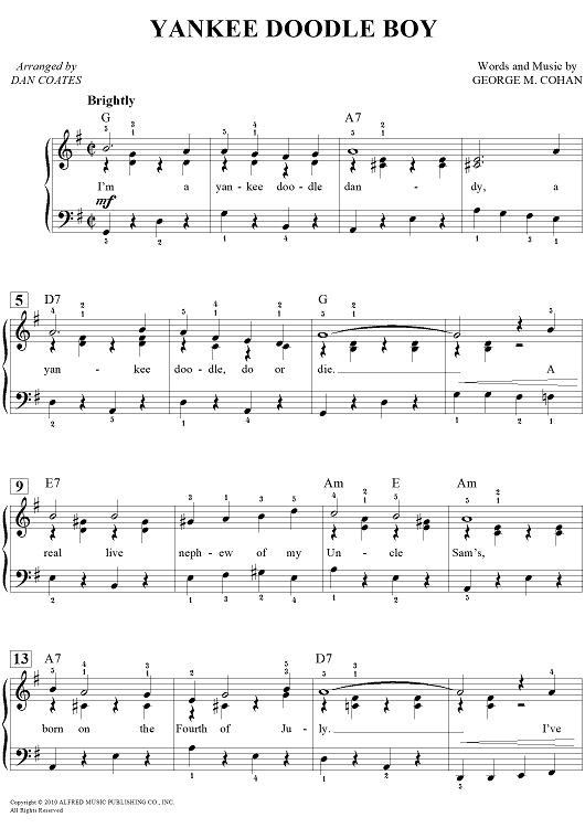 Digital Sheet Music for Yankee Doodle Boy by Dan Coates, George M Cohan scored for Easy Piano/Vocal/Chords; id:457371