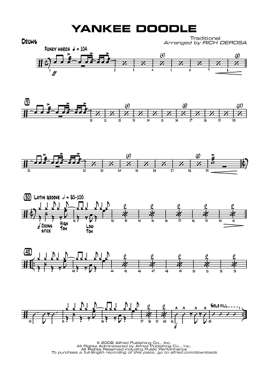 Digital Sheet Music for Yankee Doodle - Drums by Traditional, Rich DeRosa scored for Jazz Ensemble; id:359756