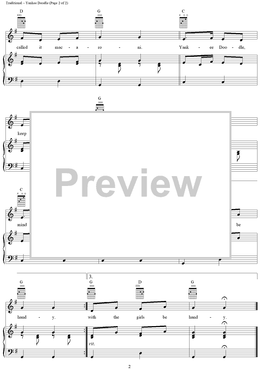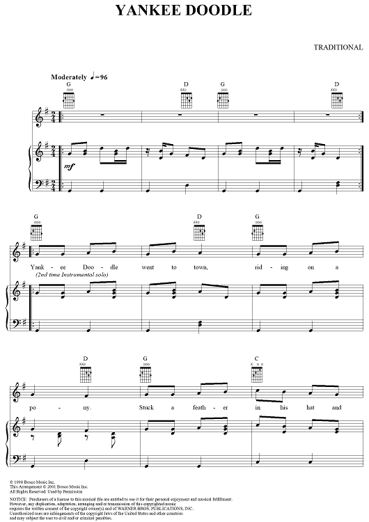 Digital Sheet Music for Yankee Doodle by Traditional scored for Piano/Vocal/Chords; id:289212
