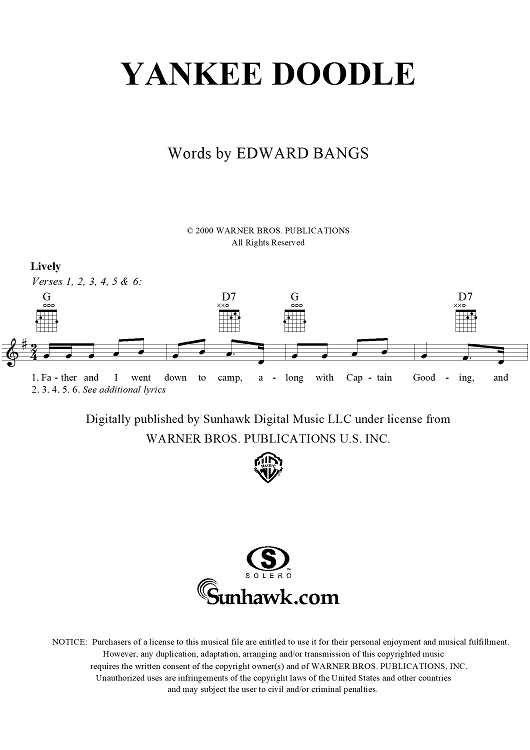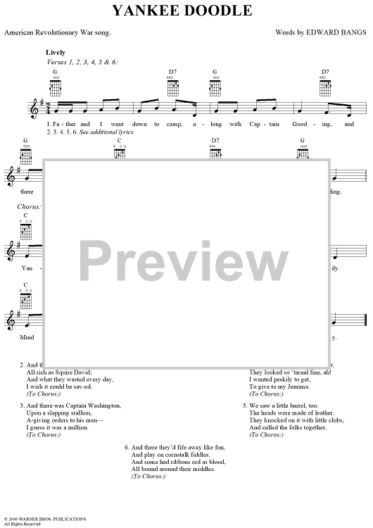 Digital Sheet Music for Yankee Doodle by Edward Bangs scored for Lead Sheet; id:292610