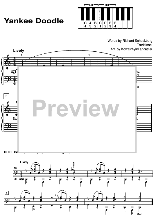 Digital Sheet Music for Yankee Doodle by Traditional, Gayle Kowalchyk, E. L. Lancaster, Richard Schackburg scored for Piano; id:503936
