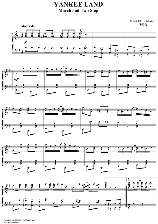 Digital Sheet Music for Yankee Land by Max Hoffmann scored for Piano Solo; id:266329