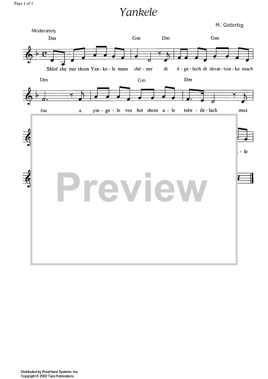 Digital Sheet Music for Yankele - Score by Mordechai Gebirtig, Velvel Pasternak scored for Any Klezmer instrumentation; id:343920