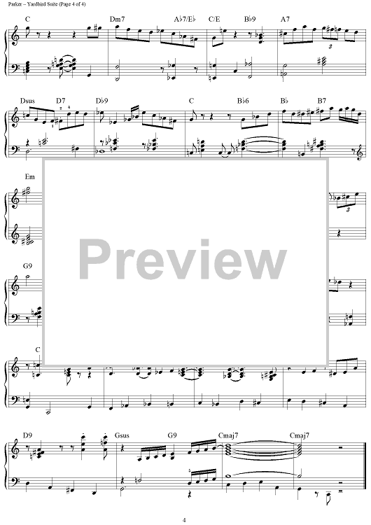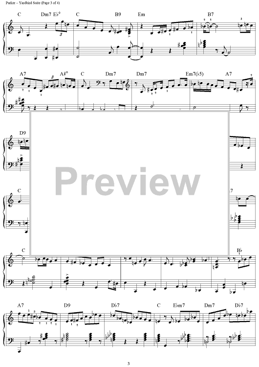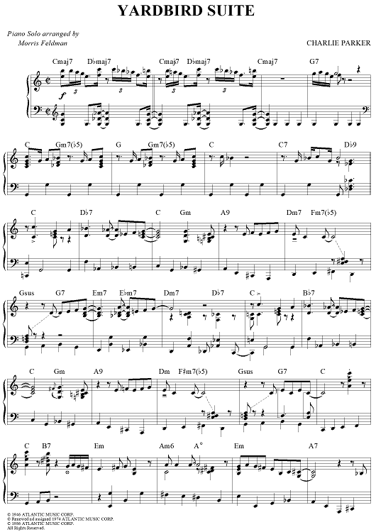 Digital Sheet Music for Yardbird Suite by Charlie Parker, Morris Feldman scored for Piano Solo; id:441563