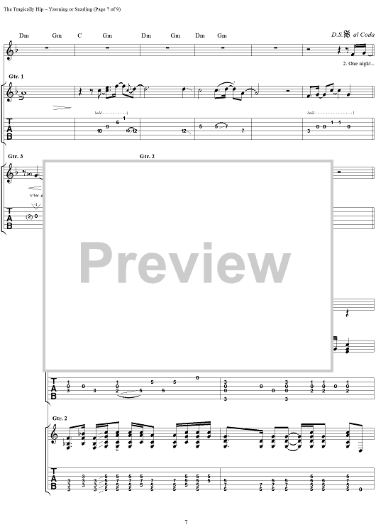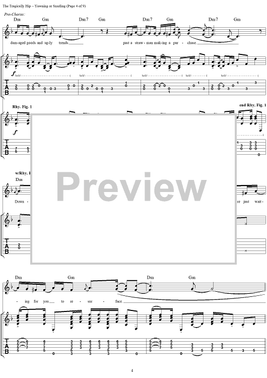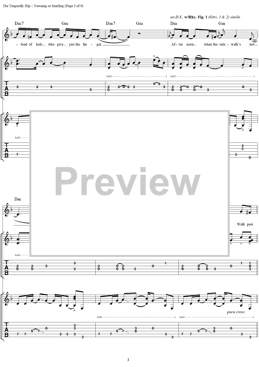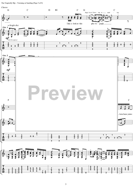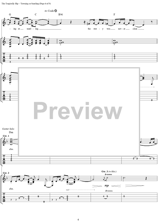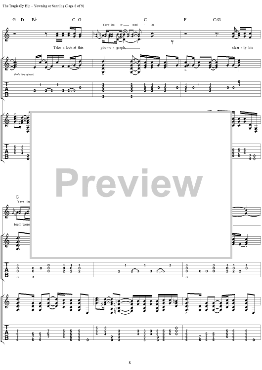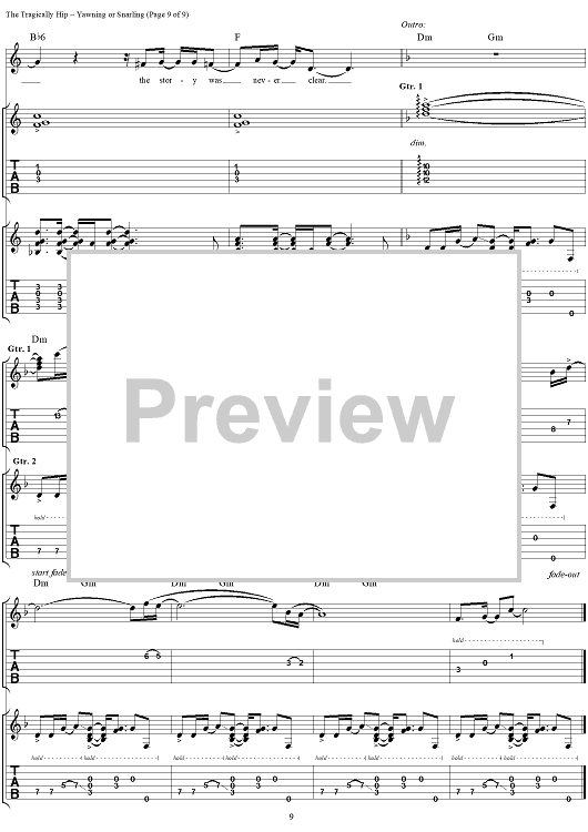 "Yawning or Snarling" Sheet Music by The Tragically Hip