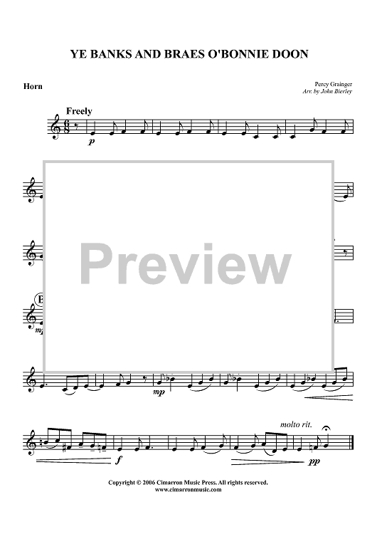 Digital Sheet Music for Ye Banks and Braes O'Bonnie Doon - Horn by John Bierley, Percy Grainger scored for Brass Quintet; id:360133