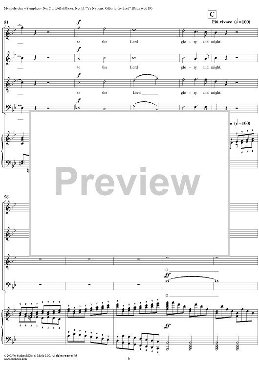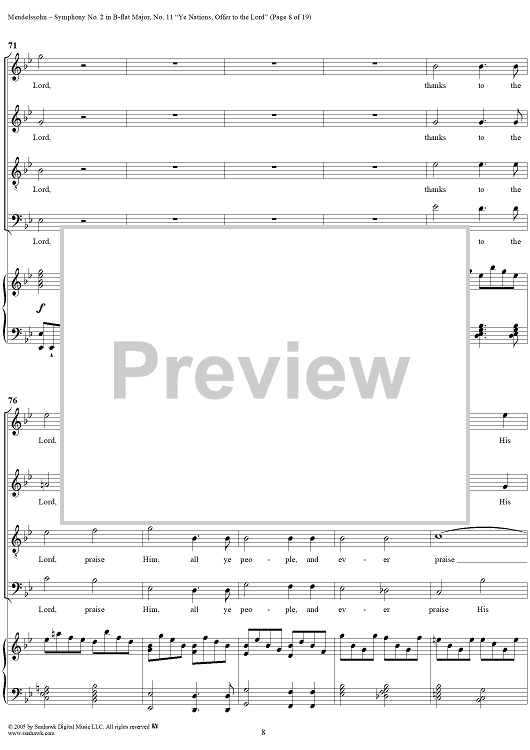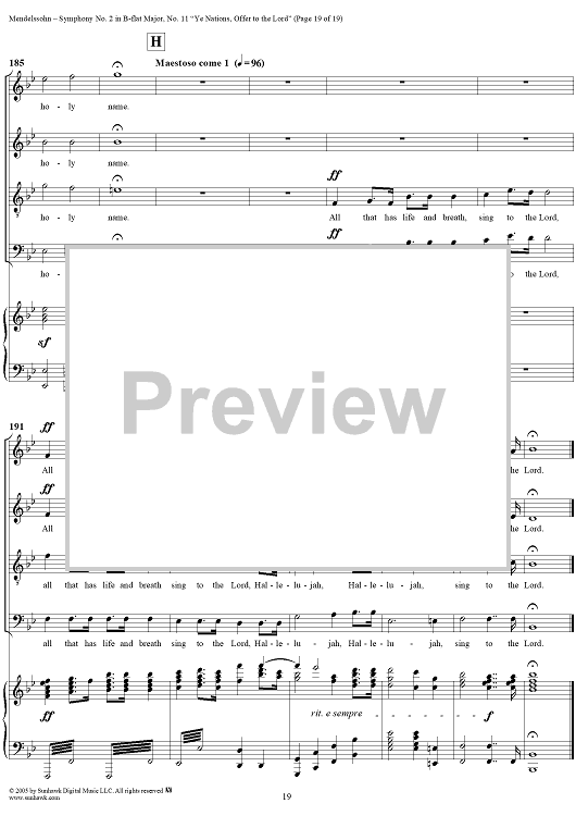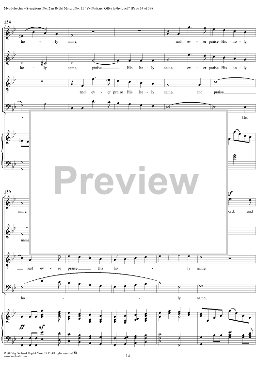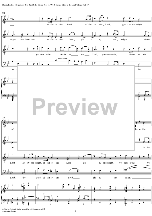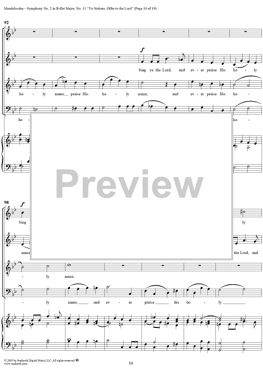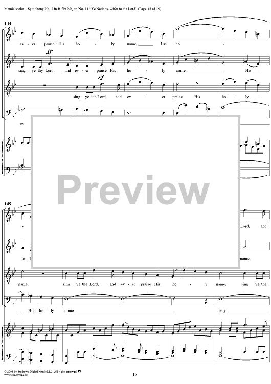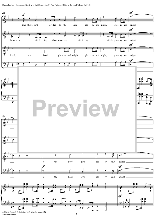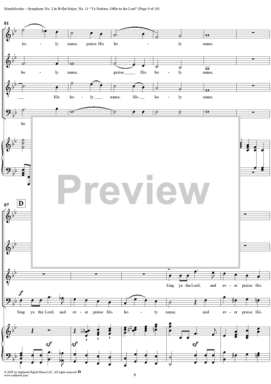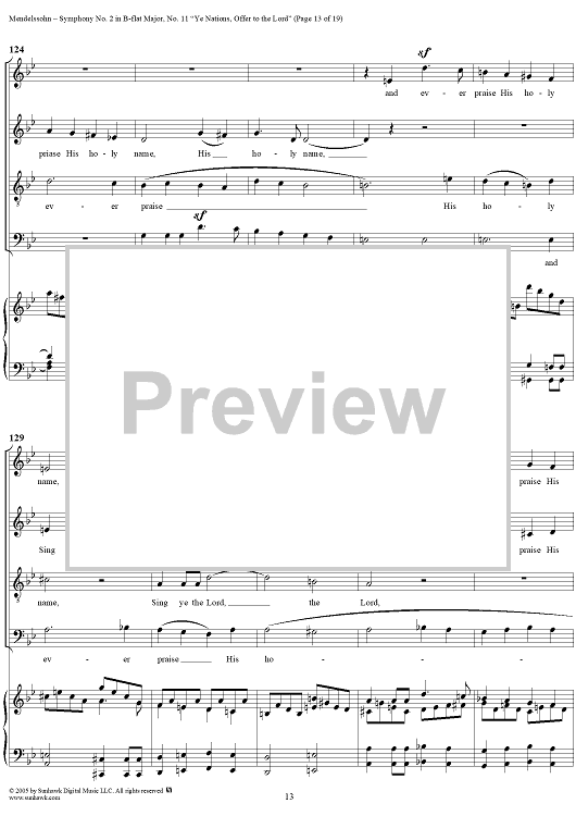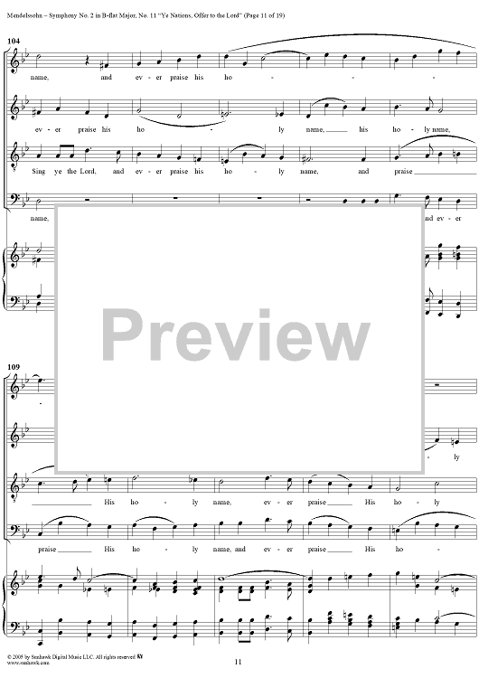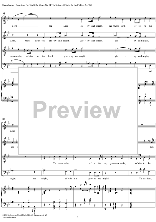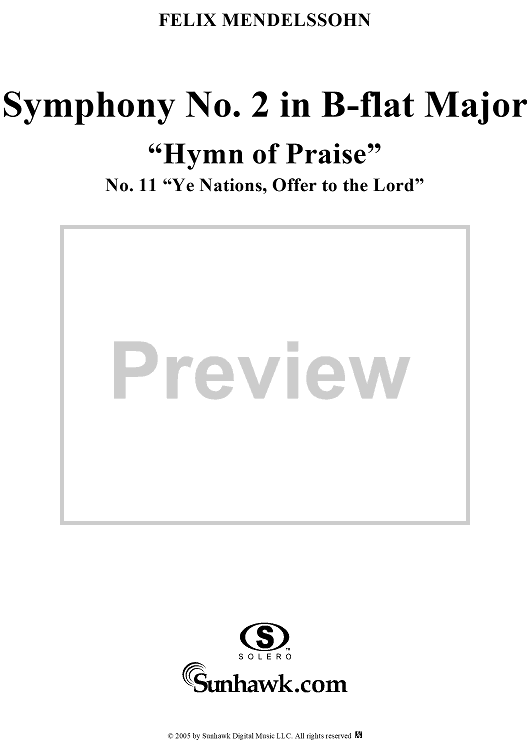 Digital Sheet Music for Ye nations, offer to the Lord (Chorus), No. 11 from Symphony No. 2 in B-flat Major "Hymn of Praise", Op. 52 by Felix Mendelssohn scored for Four-part Mixed Chorus/Piano; id:307166