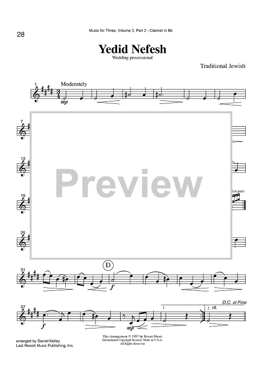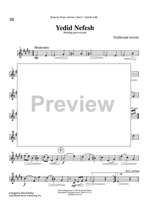 Digital Sheet Music for Yedid Nefesh - Wedding processional - Part 2 Clarinet in Bb by , Daniel Kelley, Traditional Jewish scored for Instrumental Trio; id:424126