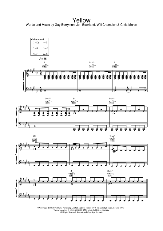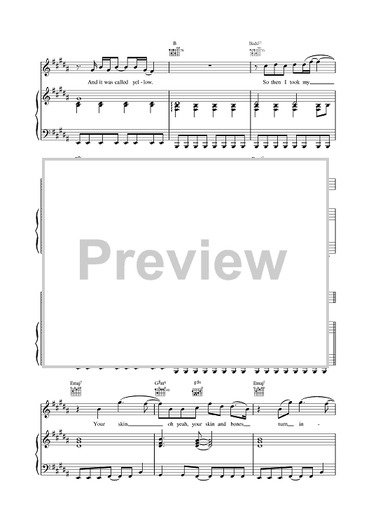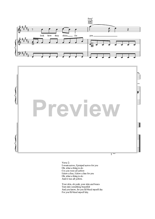 Digital Sheet Music for Yellow by Coldplay scored for Piano/Vocal/Chords; id:377202