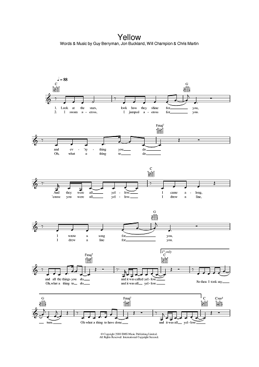 "Yellow" Sheet Music by Coldplay
