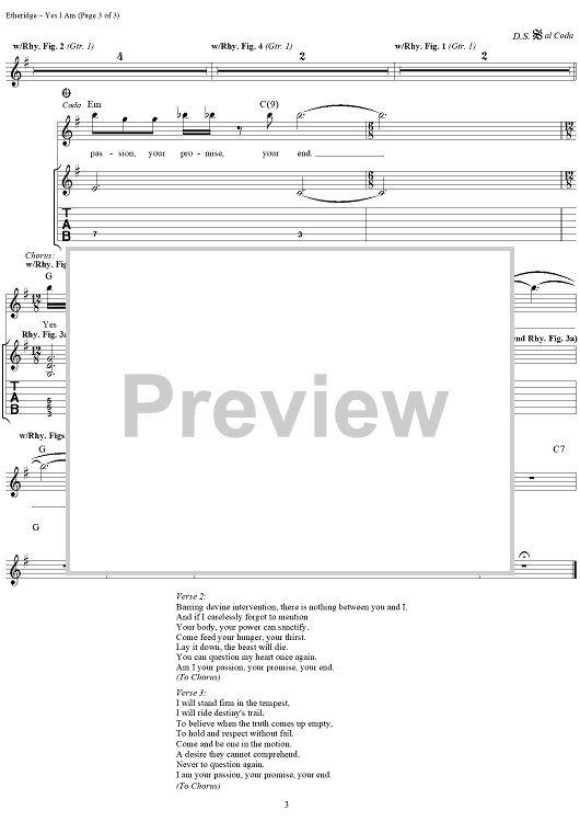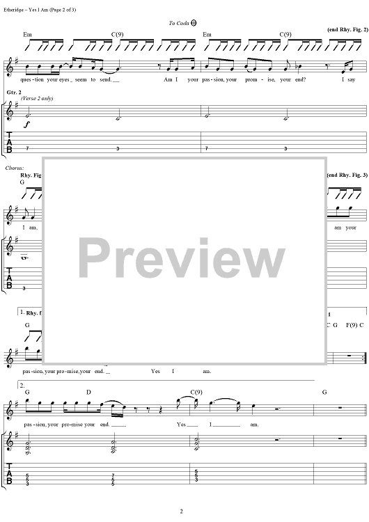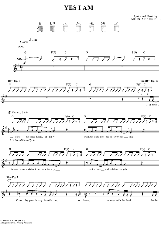 "Yes I Am" Sheet Music by Melissa Etheridge