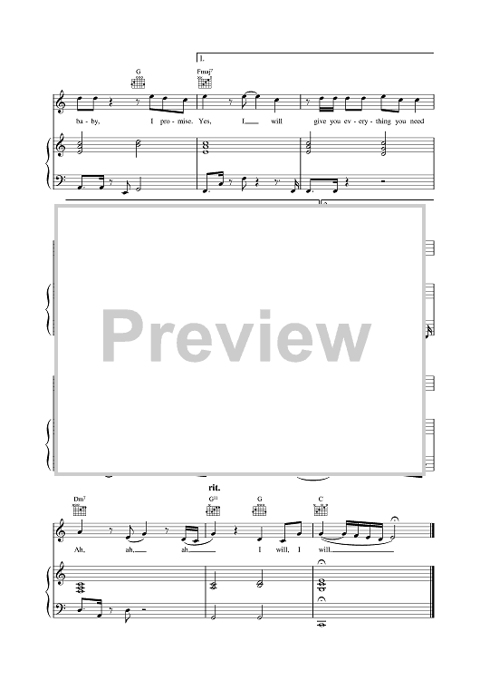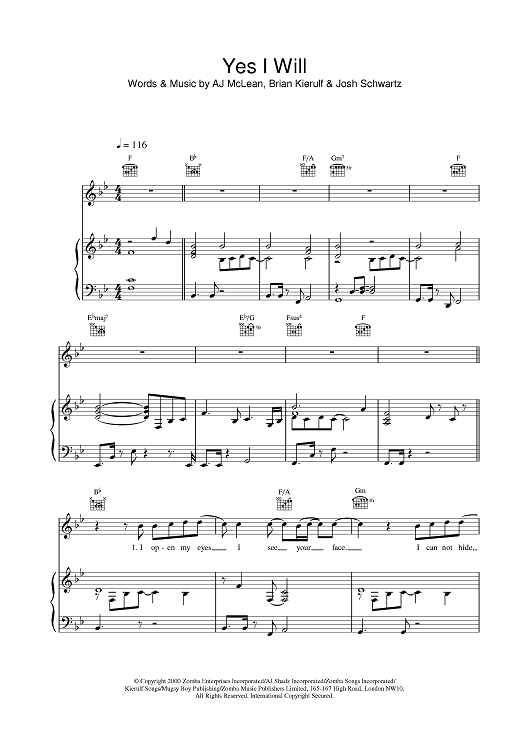 Digital Sheet Music for Yes I Will by Brian Kierulf, A. J. McLean, Josh Schwartz, Boyzone scored for Piano/Vocal/Chords; id:377228