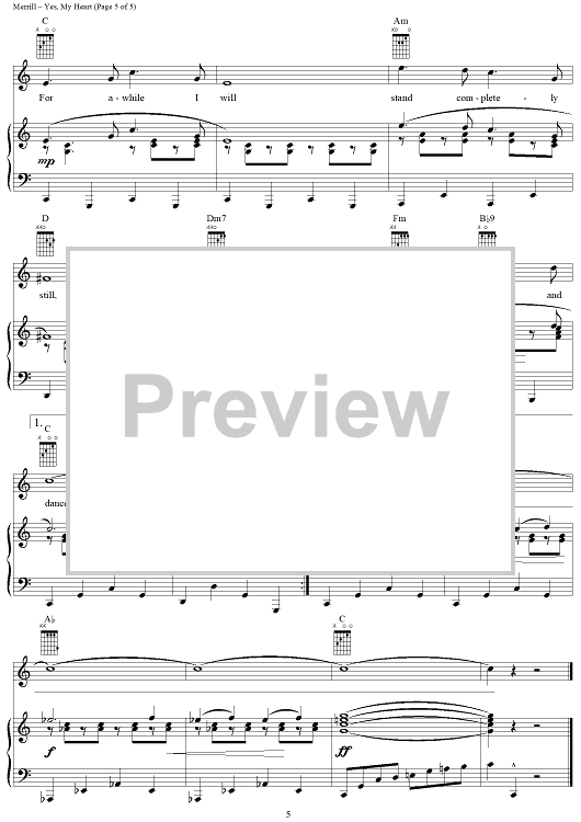 "Yes, My Heart" Sheet Music by Bob Merrill