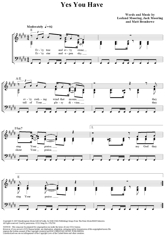 Digital Sheet Music for Yes You Have by Matt Bronleewe, Leeland Mooring, Jack Mooring, Leeland scored for Piano/Vocal/Chords; id:355934