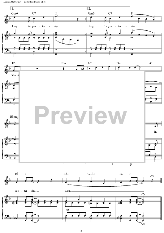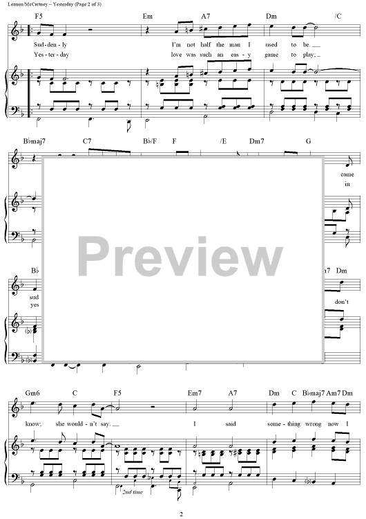 Digital Sheet Music for Yesterday by Paul McCartney, The Beatles, John Lennon scored for Piano/Vocal/Chords; id:361022
