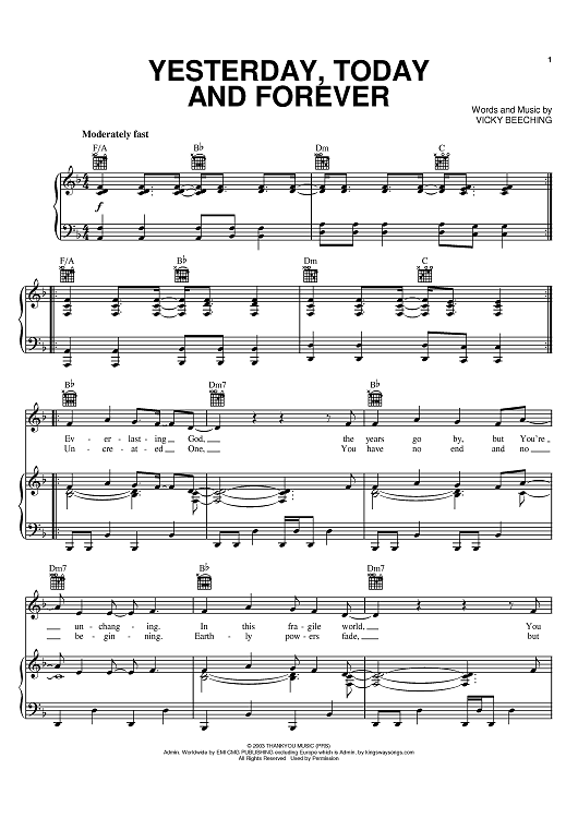 Digital Sheet Music for Yesterday, Today And Forever by Vicky Beeching scored for Piano/Vocal/Chords; id:374788