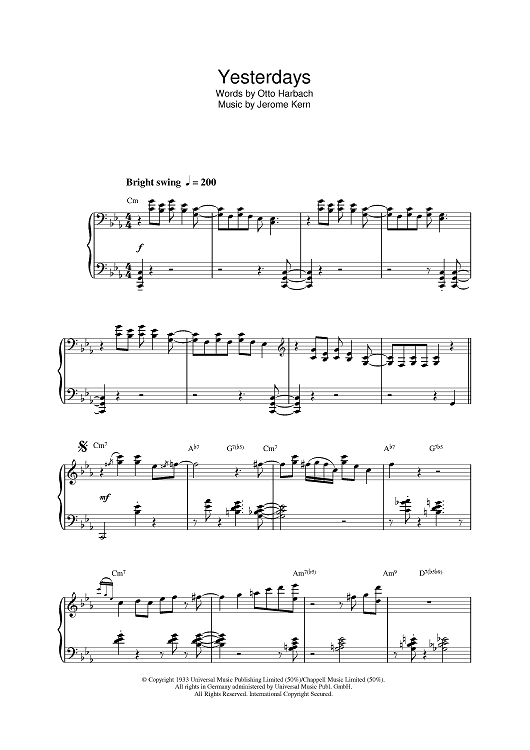 Digital Sheet Music for Yesterdays by Jerome Kern, Otto Harbach, Dudley Moore scored for Piano; id:396269