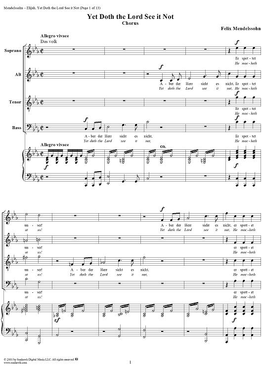 Digital Sheet Music for Yet Doth the Lord See it Not - No. 5 from "Elijah", part 1 by Felix Mendelssohn scored for Vocal Score; id:252287