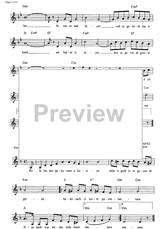 "Yiddishe Mame / Di Grine Kuzine - Score" Sheet Music by Various