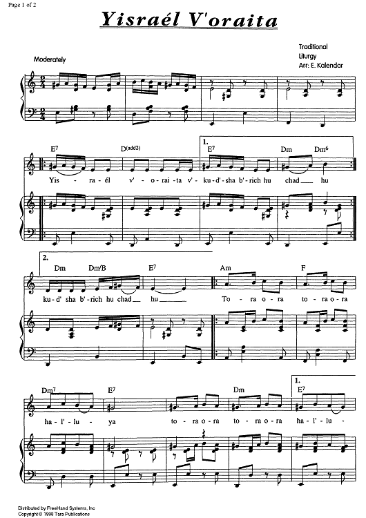 Digital Sheet Music for Yisraél V'oraita by , Edward Kalendar, Traditional scored for Voice/Piano; id:343843