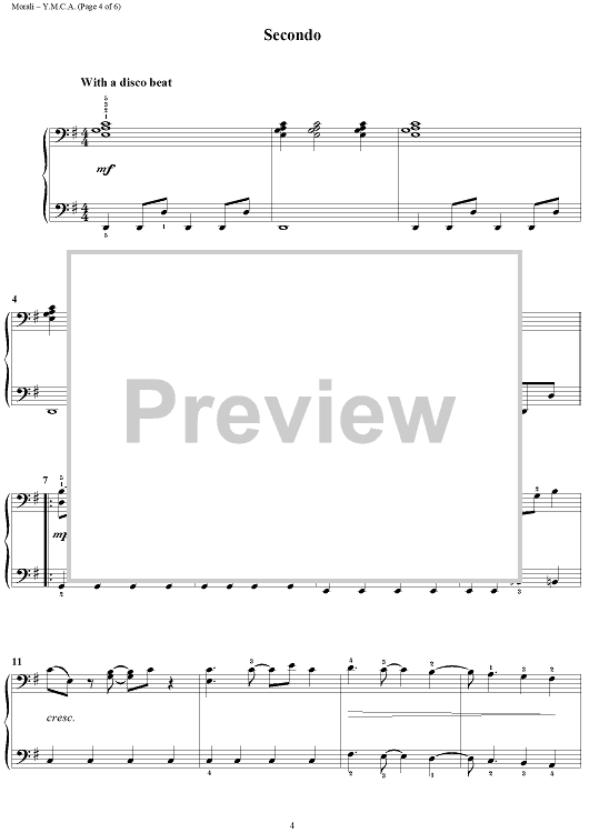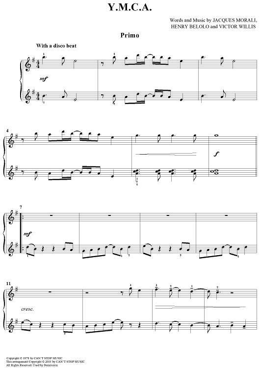 Digital Sheet Music for Y.M.C.A. by Jacques Morali, Henri Belolo, Village People, Victor Willis scored for 1 Piano, 4 Hands; id:372631