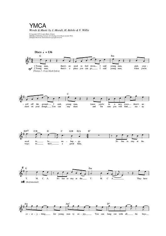 Digital Sheet Music for Y.M.C.A. by Jacques Morali, Henri Belolo, Village People, Victor Willis scored for Lead Sheet; id:380898