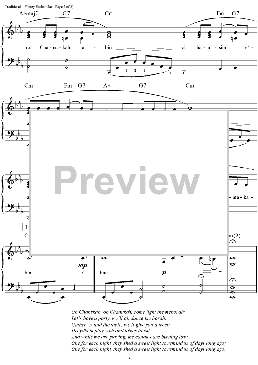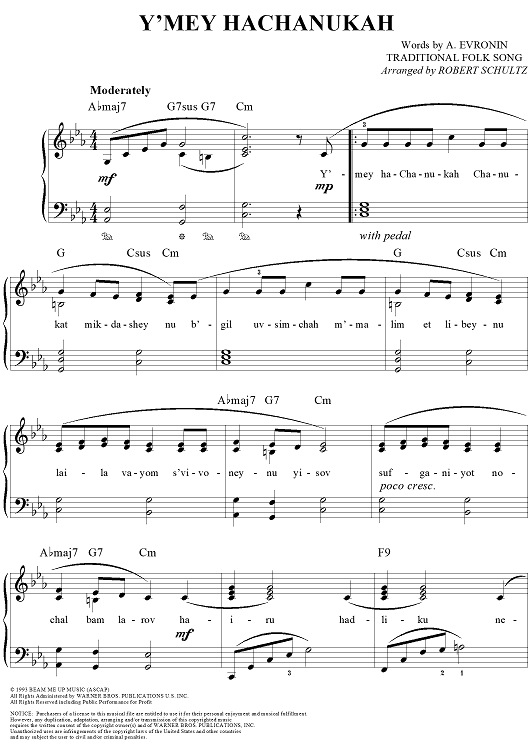 "Y'mey Hachanukah" Sheet Music by Traditional