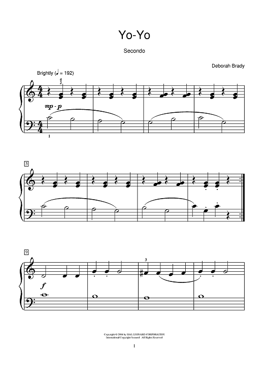 Digital Sheet Music for Yo-Yo by Deborah Brady scored for 1 Piano, 4 Hands; id:374534