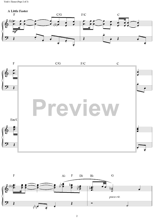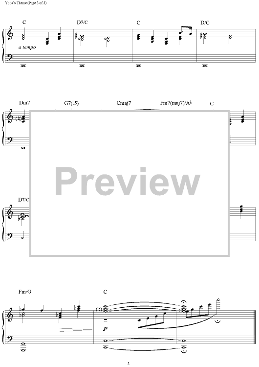 Digital Sheet Music for Yoda's Theme by John Williams scored for Piano Solo; id:96010