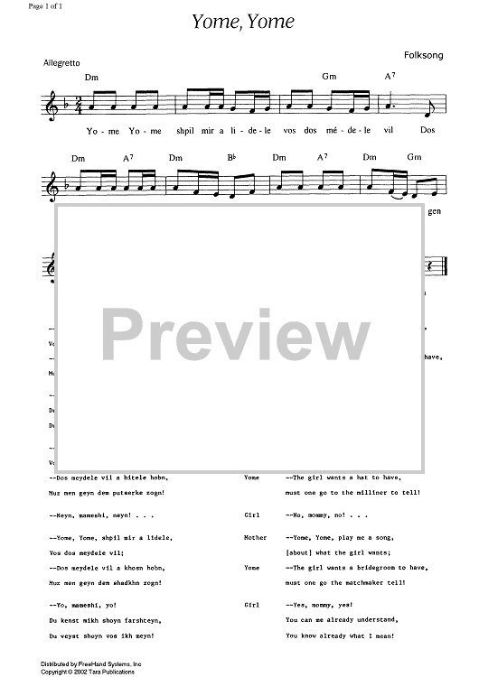 "Yomme, Yomme - Score" Sheet Music by Traditional