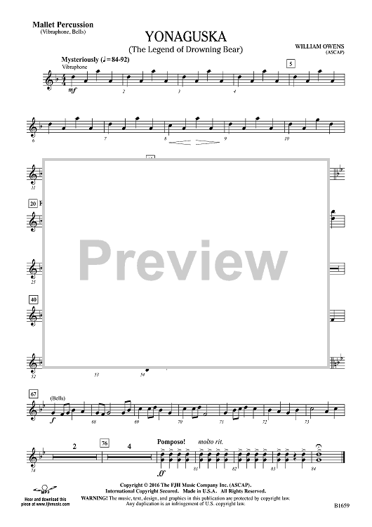 Digital Sheet Music for Yonaguska (The Legend of Drowning Bear) - Mallet Percussion by William Owens scored for Concert Band; id:500800