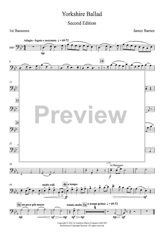Digital Sheet Music for Yorkshire Ballad for Band, 2nd Edition - Bassoon 1 by James Barnes scored for Concert Band; id:503251