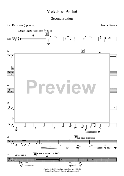Digital Sheet Music for Yorkshire Ballad for Band, 2nd Edition - Bassoon 2 by James Barnes scored for Concert Band; id:503252