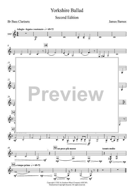 Digital Sheet Music for Yorkshire Ballad for Band, 2nd Edition - Bb Bass Clarinet by James Barnes scored for Concert Band; id:503256
