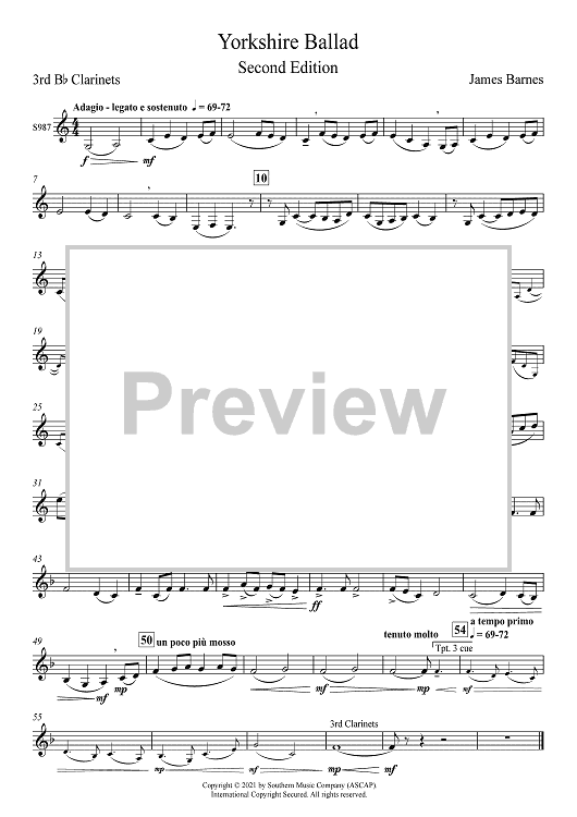 "Yorkshire Ballad for Band, 2nd Edition - Bb Clarinet 3" Sheet Music by James Barnes