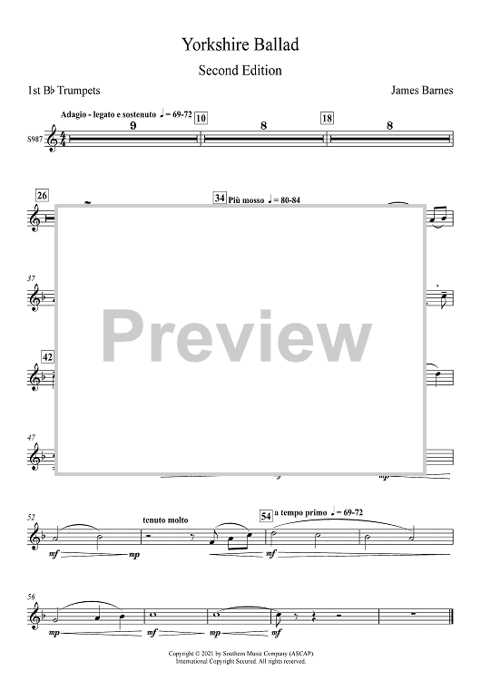"Yorkshire Ballad for Band, 2nd Edition - Bb Trumpet 1" Sheet Music by James Barnes