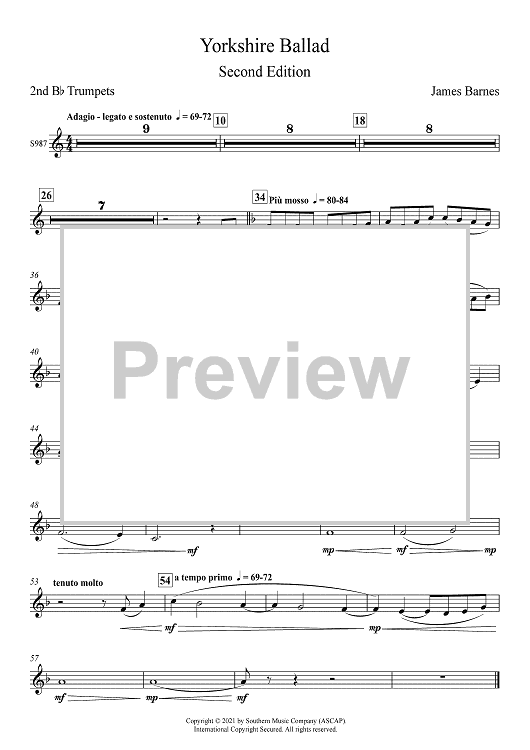 "Yorkshire Ballad for Band, 2nd Edition - Bb Trumpet 2" Sheet Music by James Barnes
