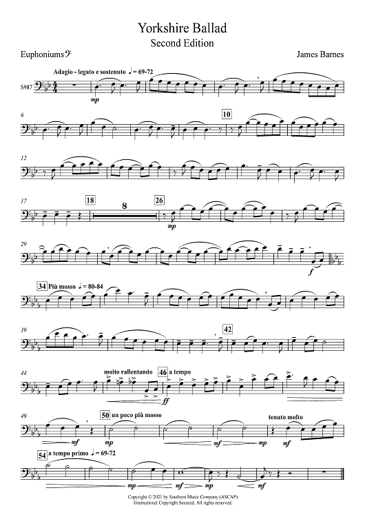 Digital Sheet Music for Yorkshire Ballad for Band, 2nd Edition - Euphoniums TC/BC by James Barnes scored for Concert Band; id:503270