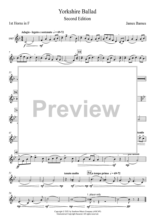 Digital Sheet Music for Yorkshire Ballad for Band, 2nd Edition - F Horn 1 by James Barnes scored for Concert Band; id:503265